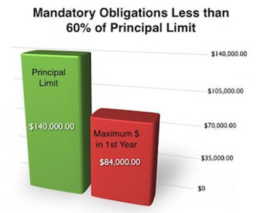 2. The sum of Mandatory Obligations (existing mortgage payoff, tax liens, closing costs, mortgage insurance premium) plus 10% of the Principal Limit. This total cannot exceed the total Principal Limit at the time of loan closing.